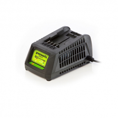 De Greenworks 24 volt acculader type G24C is geschikt voor het laden van 24 volt lithium ion accu’s.