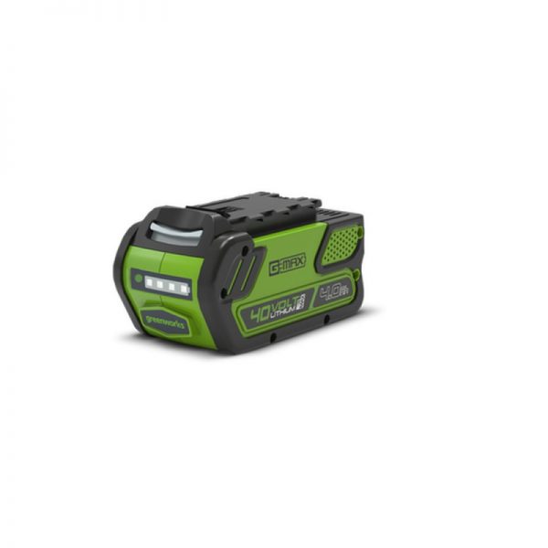 De Greenworks lithium ION accu’s hebben een 3 x langere levensduur dan NICAD accu’s. De accu’s hebben geen geheugen effect “u mag  altijd laden en bijladen”. De accu’s geven continue een gelijk vermogen en zijn tot 2000x oplaadbaar. De accu’s zijn tevens voorzien van 4 led lampjes welke de nog aanwezige hoeveelheid energie in de accu aangeven. De 40 Volt accu’s zijn te gebruiken in alle 40 volt Greenworks machines onafhankelijk van het Ah van de accu. De laadtijd van een G40B4 (4.0Ah) accu met een G40C acculader is 2 uur. Met de snellader G40UC4 is de laadtijd 60 minuten. Gewicht 1,344 Kg