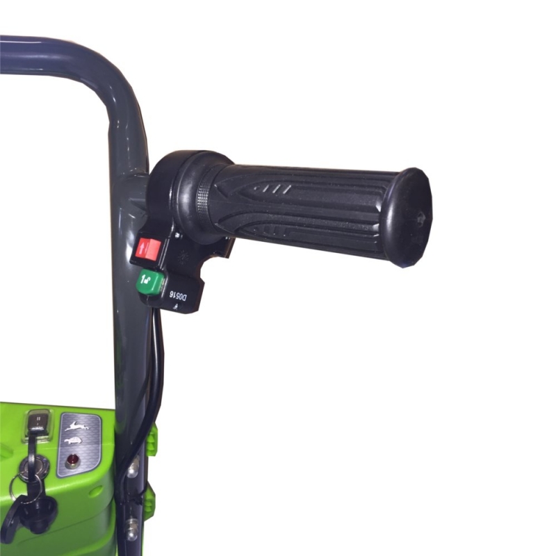 De accukruiwagen wordt geleverd zonder accu en oplader. De kruiwagen is voorzien van zwenkwiel aan de bestuurders kant en een differentieel aan de voorzijde. Uiteraard kunt u de bak met een maximale inhoud van 06 liter eenvoudig kiepen aangezien deze wordt ondersteund door een gasveer.