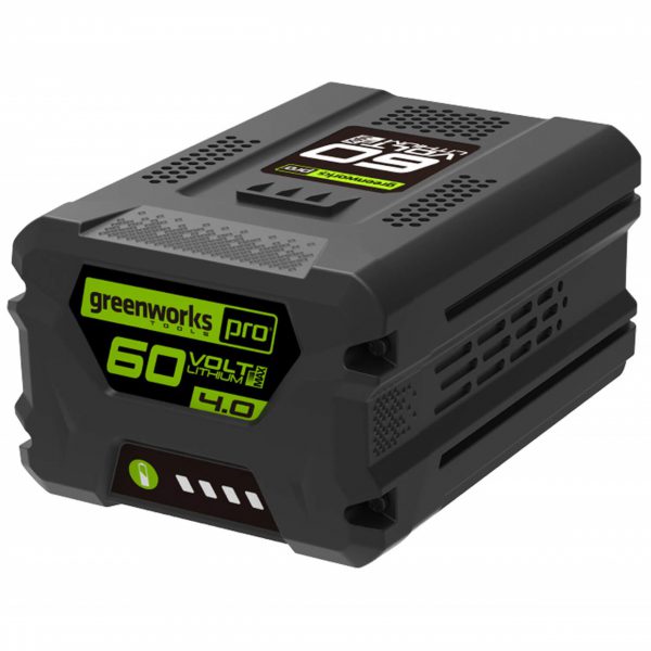 De Greenworks 60 volt accu G60B4, is een Lithium Ion accu met een 4.0 Ah inhoud (216 Wh). De accu heeft een 3 x langere levensduur dan NICAD accu’s, een laadtijd van 60 minuten, geen geheugen effect “u mag altijd laden”, geeft altijd een gelijk vermogen en is tot 2000x oplaadbaar.