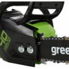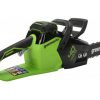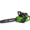 Met de Greenworks 40 volt accu kettingzaag type GD40CS18 heeft u een zeer krachtige accu kettingzaag. De DIGIPRO koolborstel vrije motor zorgt voor 30% extra vermogen en 70% minder trillingen. Het grote voordeel van snoerloos zagen is uiteraard geen verlengsnoeren geen lawaai en geen brandstof. Dit laatste betekent geen uitlaatgassen dus ook nog eens milieuvriendelijk zagen.